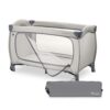 Designed to support children from birth up to 15 kg, this travel cot creates a familiar and comfortable sleeping environment wherever it is used. Two large mesh panels ensure steady airflow for a pleasant sleep climate, reducing the chance of draughts while keeping visibility clear. An extra-large side hatch gives curious youngsters the freedom to crawl in and out independently, making it both a practical sleep space and an inviting play area. With two smooth-rolling wheels and a compact carry bag, it transports easily whether assembled or folded. Optional accessories allow the cot to be adapted into a play tent, protected from insects, or enhanced with additional comfort items.