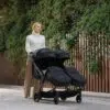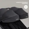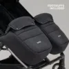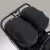 Both seats are designed with plush padding and multiple recline positions to ensure each child travels in comfort. Included footmuffs keep little legs warm on cooler days, while individual cup holders provide easy access to drinks and snacks. Premium fabrics throughout add a refined finish and long-lasting durability.