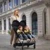 Large, durable wheels provide confidence across a variety of surfaces, from cobbled streets to park pathways. Even with two children on board, the Ayla Twin glides smoothly while remaining easy to steer thanks to its lightweight frame and balanced design.