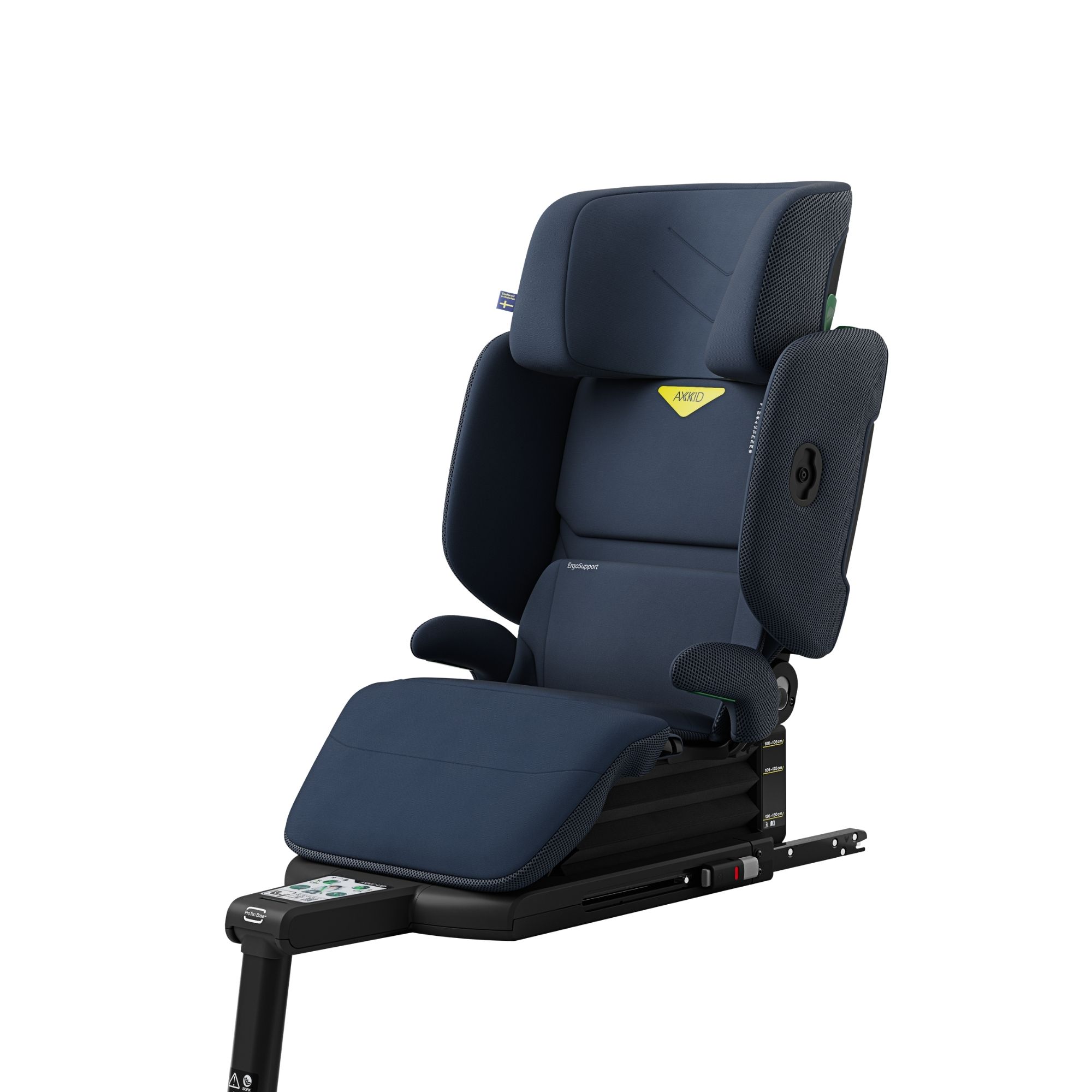 Setting a new standard in forward-facing child car seat safety, the AXKID Up™ is the only high back booster in the world featuring a patented raisable seat. This innovative feature ensures optimal belt positioning, working in harmony with your vehicle’s built-in safety systems such as side airbags and pretensioners. Reinforced by a ProTecBase™ steel frame and integrated support leg, it delivers increased crash stability and reduces crash forces by up to 25% based on internal testing. SnapGuard™ side impact protection, with removable wings, offers flexible safety and added comfort for growing children.