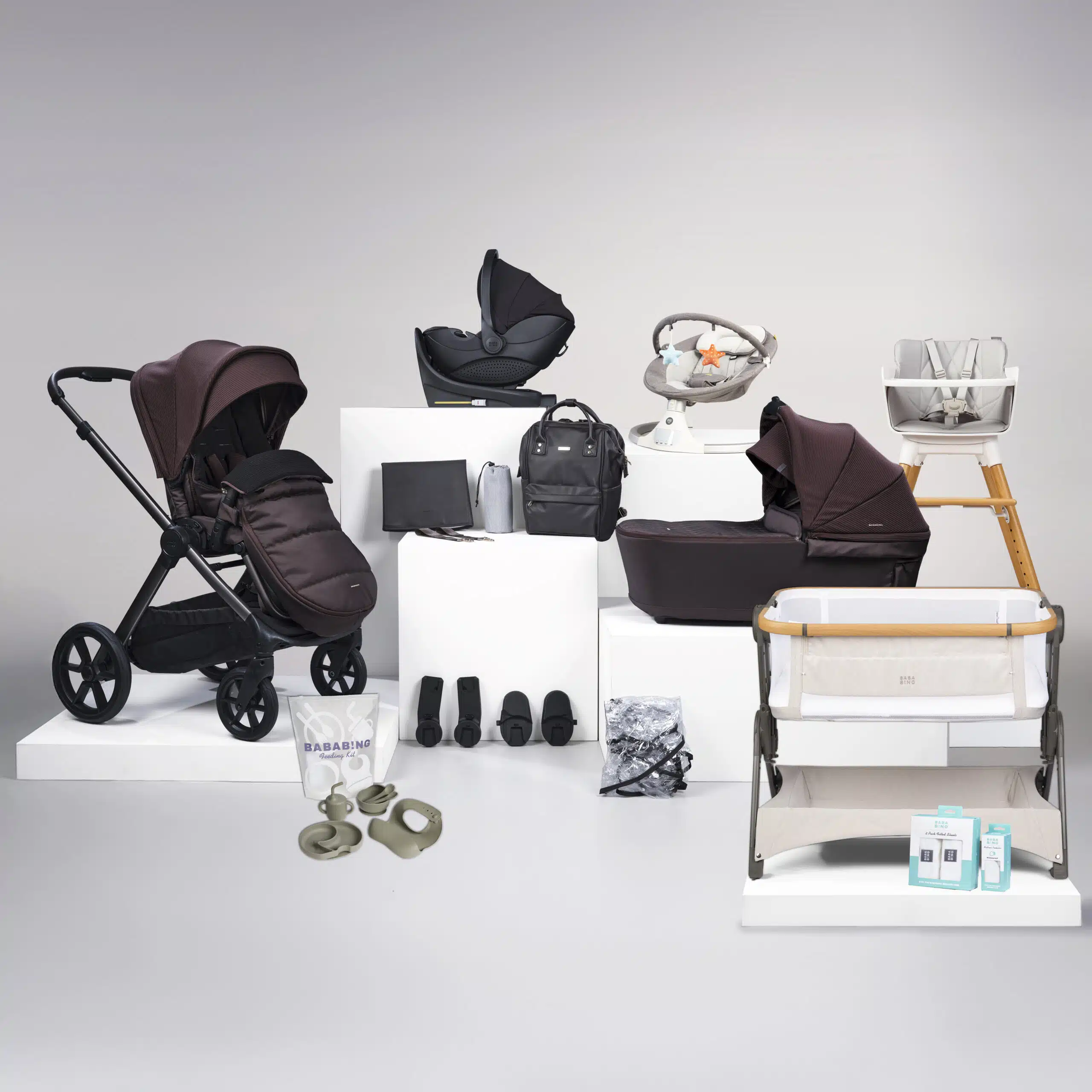 The Bababing 18 Piece Raffi Travel, Home & Feeding Bundle with Spin Car Seat & ISOFIX Base – Heritage is a premium all-in-one collection crafted to support modern family life from day one. Combining a complete travel system, smart sleep solutions, feeding essentials, and soothing comfort products, this eco-conscious bundle delivers function and style in one coordinated package.