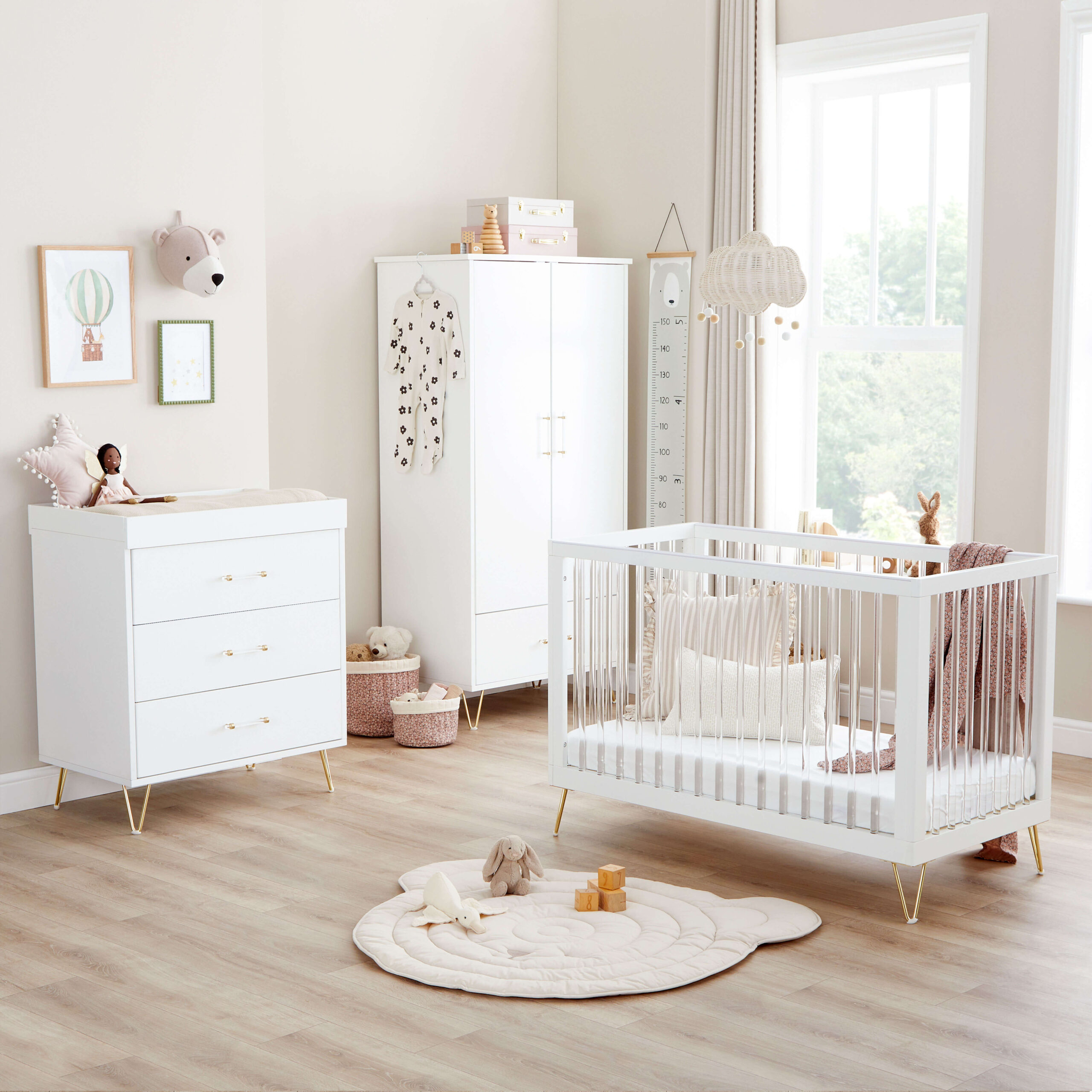 The Babymore Kimi Acrylic 3 Piece Nursery Furniture Set seamlessly combines contemporary design with practical functionality, making it an ideal choice for modern nurseries. This set includes the Kimi Acrylic Cot Bed, Kimi Acrylic Chest Changer, and Kimi Acrylic Wardrobe, each crafted to adapt to your child’s growth while enhancing your nursery’s aesthetic appeal.