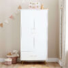 Completing the set, the Kimi Acrylic Wardrobe offers generous storage solutions with a touch of elegance. It features soft-close double doors that open to reveal two hanging rails, perfect for organizing your baby’s clothing. As your child grows, the lower hanging rail can be removed to accommodate larger garments. Additionally, a full-width drawer provides extra storage space for items such as blankets, sleeping bags, or shoes. The wardrobe’s design ensures that it remains a functional and stylish piece as your child’s needs evolve.