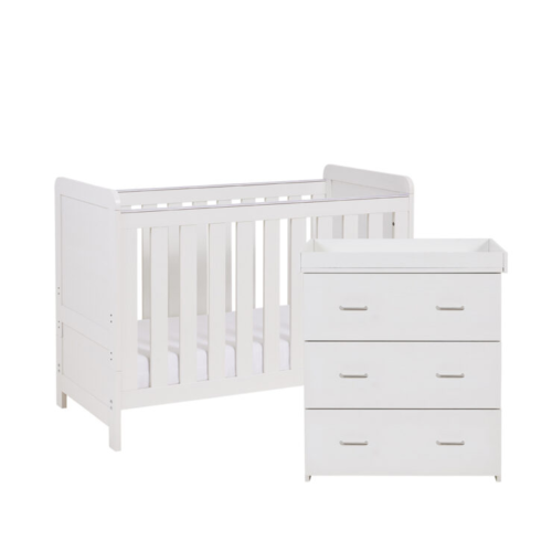 The Luno cot bed is a high quality must have for your baby. The mattress height can be adjusted to 3 different heights which allows for a continued use as your child grows, whilst maintaining a consistently high level of comfort and security for your baby. Included along the frame of the bed is a teething rail that will provide a safe and delicate area for your baby as they develop. A wide and spacious drawer tucks below the cot bed providing a stylish finish to the perfect storage area. Storage space is further increased with the chest that contains 3 large and spacious drawers that will easily meet all the storage requirements for your baby. Sitting along the top of the chest is a fully removable changing area that provides a safe and comfortable space to change your baby whenever required.