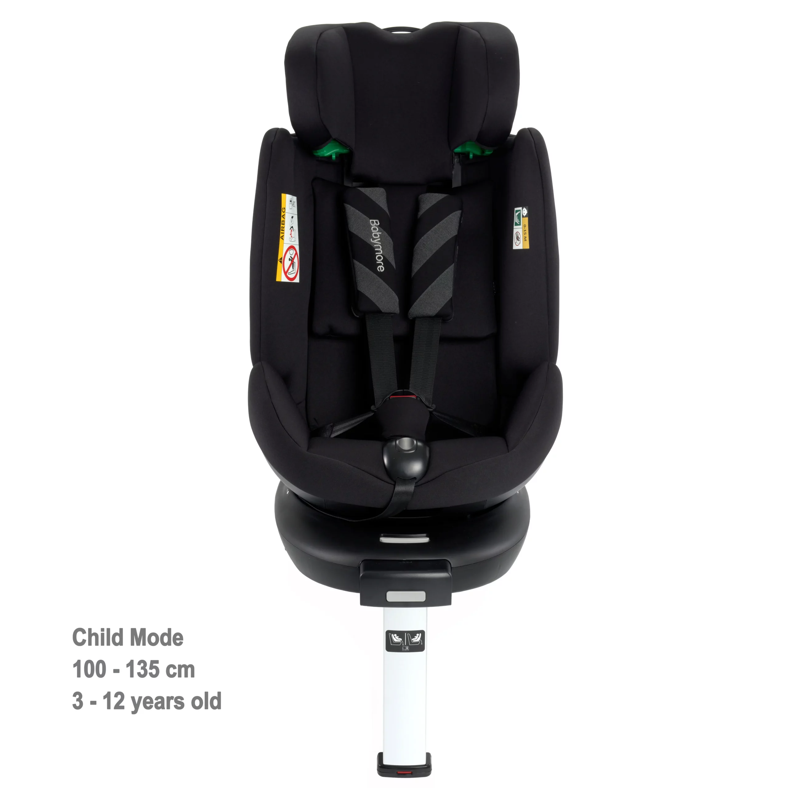 The Babymore Macadamia 360 i‑Size All Stages Car Seat is built to protect and support your child from birth to approximately 12 years (40–135cm). Meeting the latest ECE R129 i‑Size safety standard, it ensures enhanced protection with advanced side-impact shielding, a reinforced shell, and an anti-rotation support leg for greater stability.