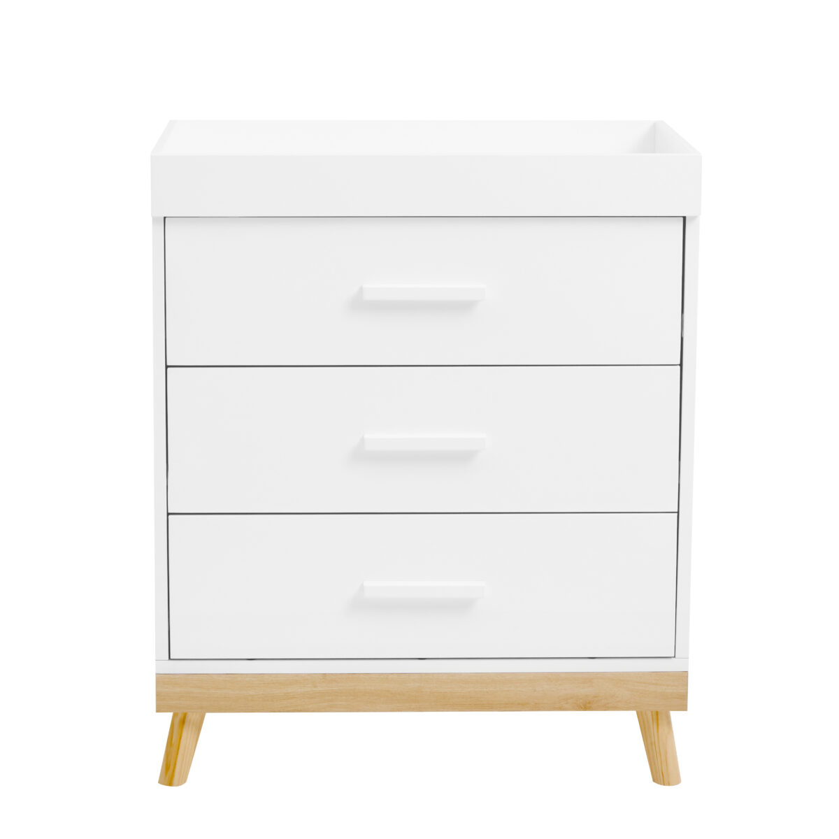 With three full-sized drawers, the Mona Chest Changer provides ample storage for your little one’s clothes, nappies, and essentials, helping you keep your nursery organized and clutter-free. The drawers glide smoothly, ensuring easy access to all of your baby’s necessities.