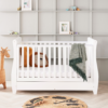 The sleigh cot bed is a timeless and elegant piece of furniture that will grow with your child. Made from sturdy wood and finished in a classic hue, it features a sleigh design with curved edges and slatted sides. The cot bed has a 3-position adjustable base, allowing you to lower it as your baby grows and a one handed drop side mechanism which allows easy access to your baby. The cot bed also comes with teething rails to protect your baby’s gums and teeth, and a handy storage drawer underneath to keep all your baby essentials close at hand. It can be converted into a toddler bed when your child is ready to make the transition from a cot.