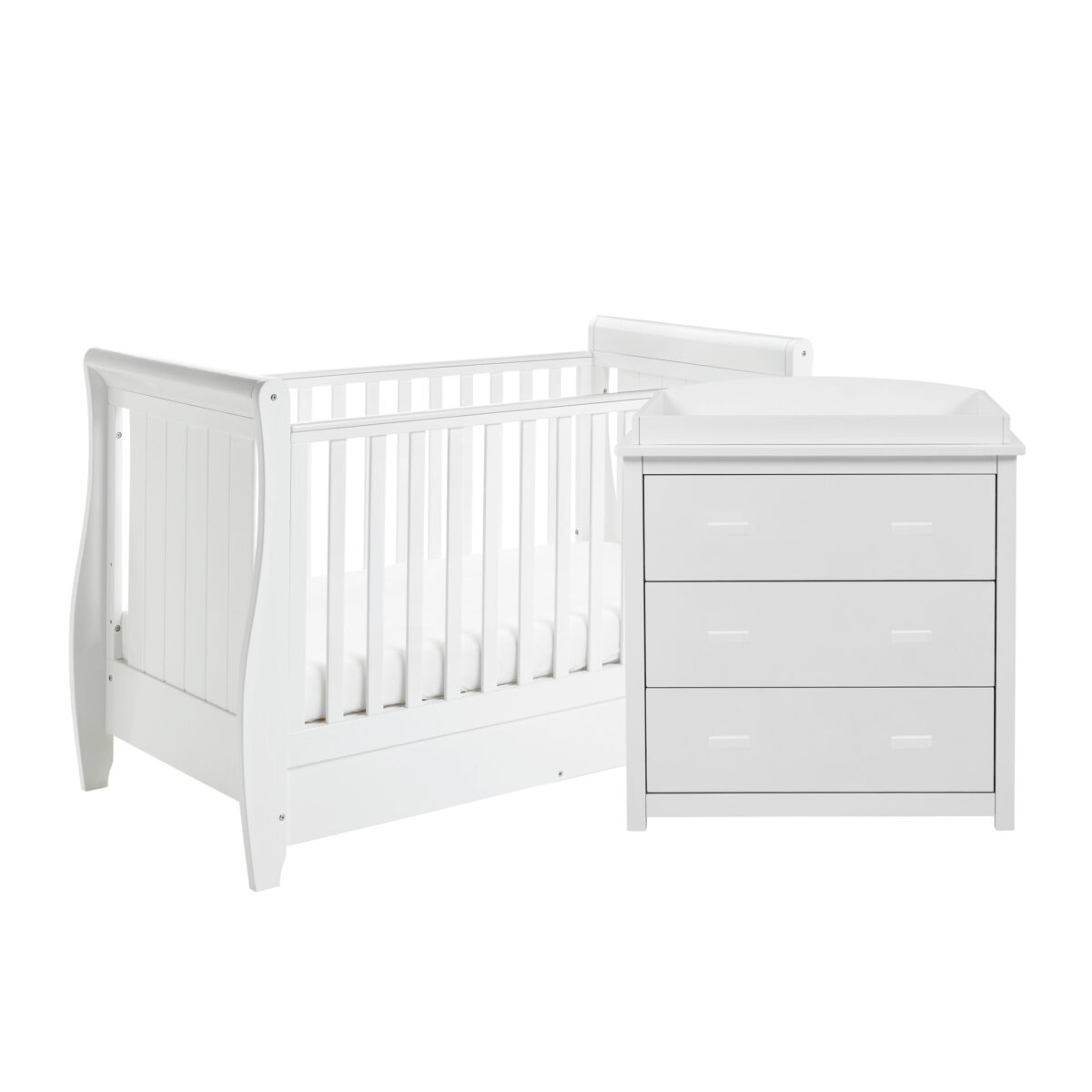 This 2-piece nursery set is perfect for parents who want a stylish and functional nursery that will grow with their child. The sleigh cot bed and chest changer are both made to the highest standards of quality and safety, and are sure to provide you and your baby with years of use and enjoyment.