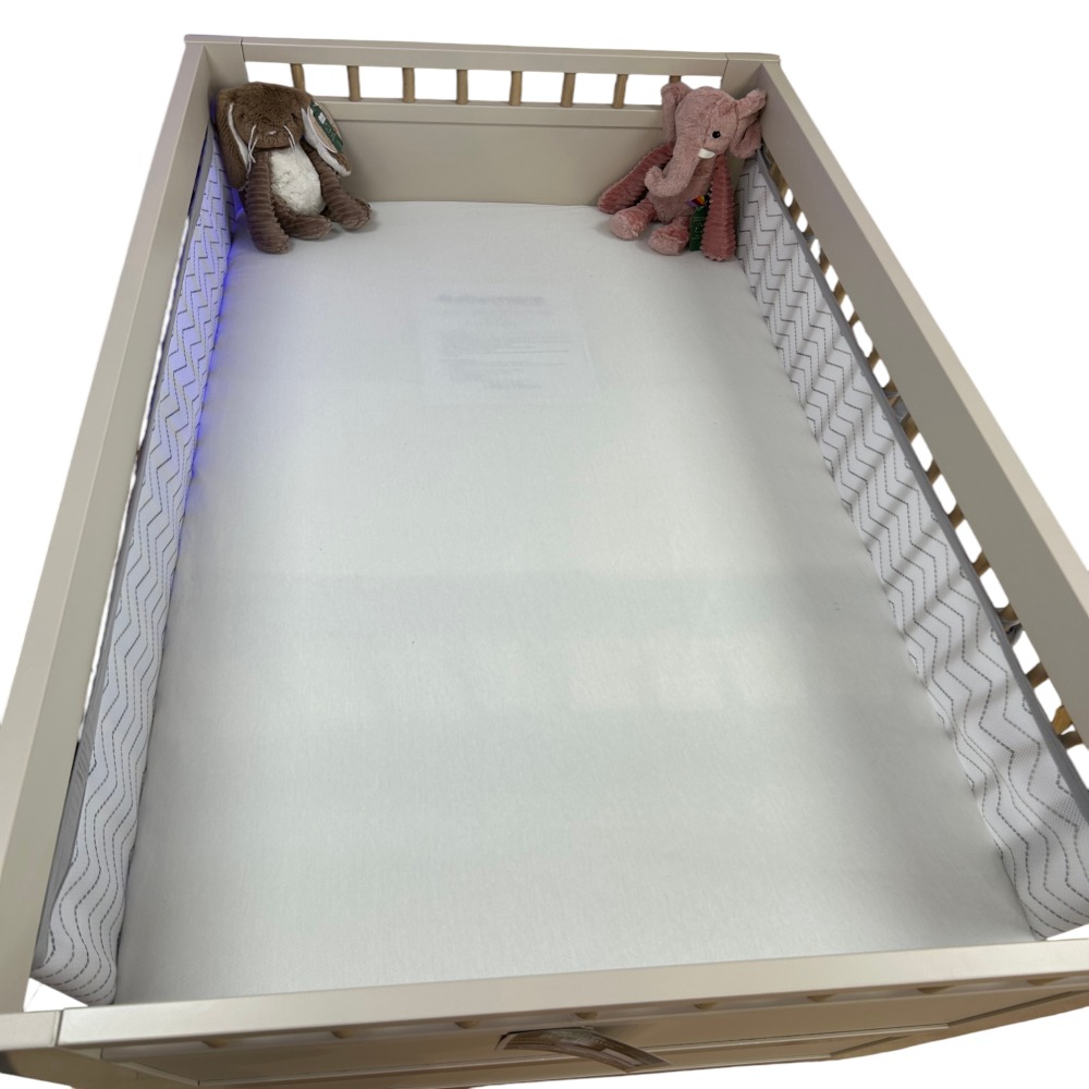 Unlike padded bumpers, BreathableBaby mesh liners prevent entrapment by keeping little arms and legs safely inside the cot while maintaining unrestricted airflow. They create a visual shield, encouraging a more restful sleep for babies and ensuring dummies stay within reach.
