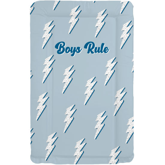 The Callowesse Changing Mat – Boys Rule is a hypo-allergenic changing mat made with CMHR 25 density soft foam, with baby-safe ink and non-toxic PVC. This changing mat is easy to clean – simply wipe over and leave to air dry! The mat is padded with raised edges giving your little one the ultimate comfort at nappy change time. The approximate dimensions of this mat are 79cm x 46cm, allowing for a perfect fit on most changing units.