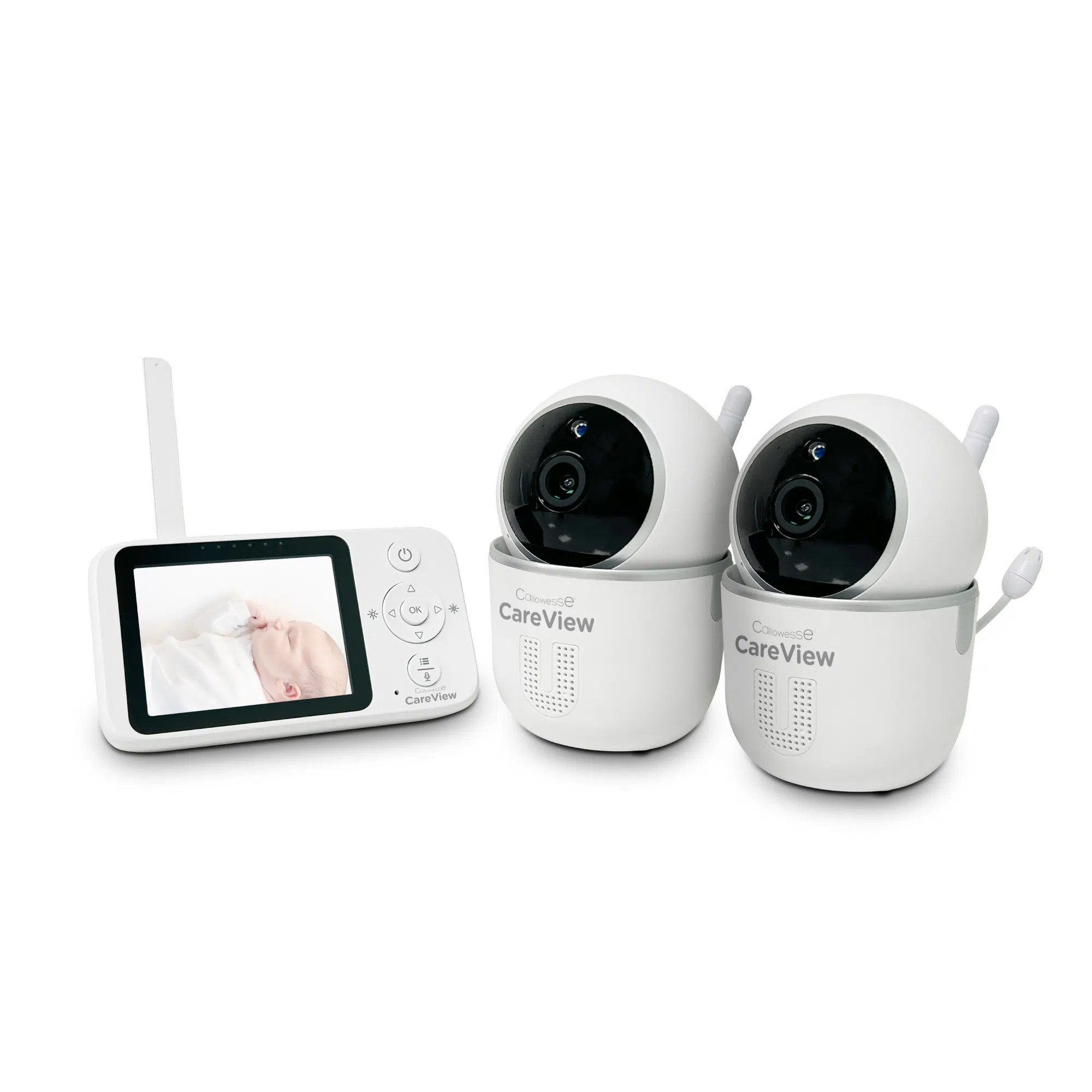The Callowesse CareView 2.8″ Digital Video Baby Monitor Twin Camera Bundle is a smart choice for parents who want to monitor two children or two rooms at the same time. With two cameras included, you can view multiple spaces from a single parent unit featuring a bright 2.8” LCD colour screen.