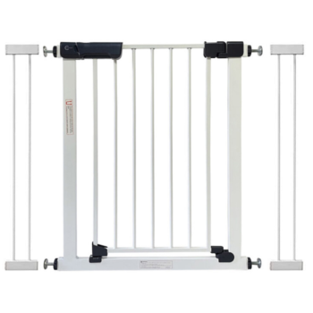 The Callowesse Kuvasz Narrow Child & Pet Pressure Fit Safety Gate – White is suitable as a baby gate or pet gate and is designed for narrow doors, stairs, and hallways. With an easy opening mechanism; simply squeeze the button on the top of the handle and the one on the bottom and open the gate.