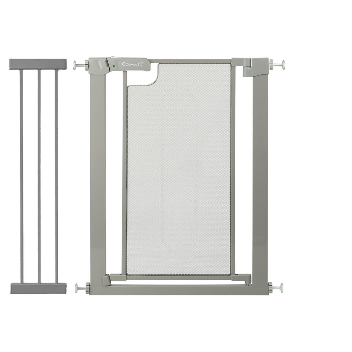 The Callowesse Metal Mesh Child & Pet Safety Gate is the perfect solution for securing narrow doorways and stairways, ensuring your little ones and pets stay safe. With a sleek, ash grey design, this pressure-fit safety gate is easy to install and does not require any drilling or screws, making it a hassle-free option for your home. The included 21 cm extension allows the gate to fit openings from 83cm to 90cm in width, giving you flexibility for various spaces.
