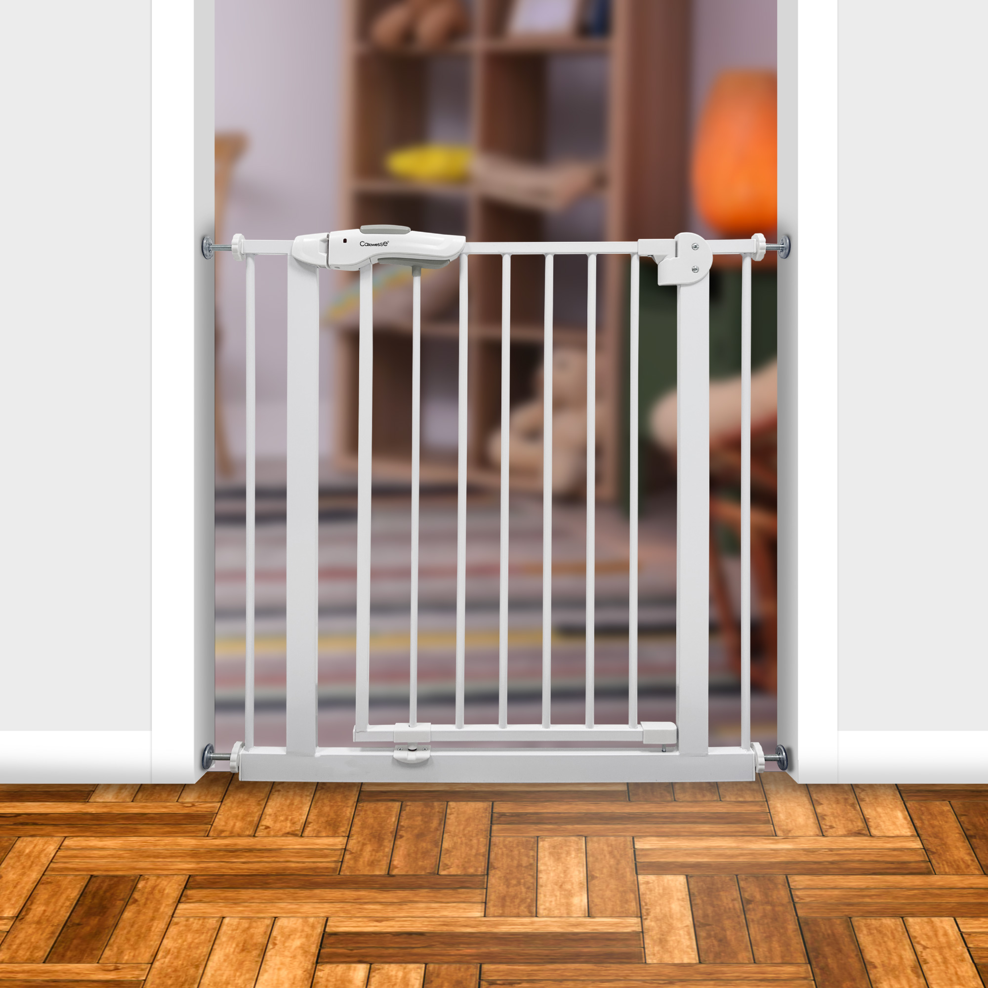 The Callowesse Shiba Easy Close Safety Gate is a secure and stylish solution for childproofing your home. Designed to fit openings between 75-85cm with a height of 78cm, it provides a robust barrier at stairways and doorways to keep your baby or toddler safe.