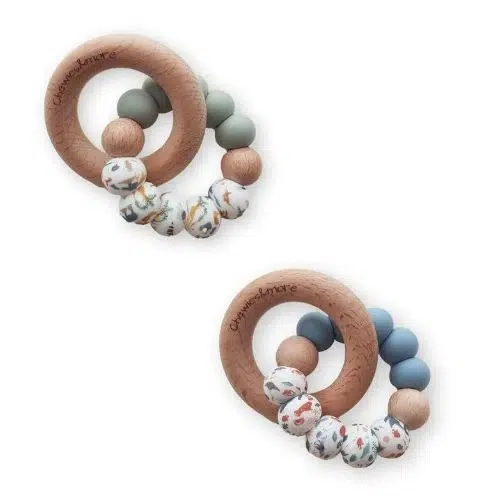 Chewies Wooden/Silicone Teething Rings Zoo – Sage/Cream