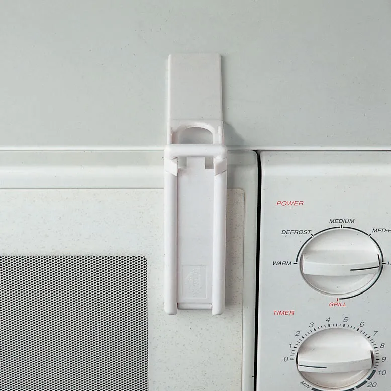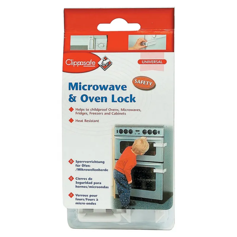 Clippasafe Microwave and Oven Lock keeps dangerous appliances locked and safely away from your child. The heat resistant latch uses adhesive pads to attach on the right angle corner of your microwave, oven or even fridge. The latch uses a two finger squeeze lock to release the lock to open the door, it can be use on a multitude of appliances throughout the kitchen.