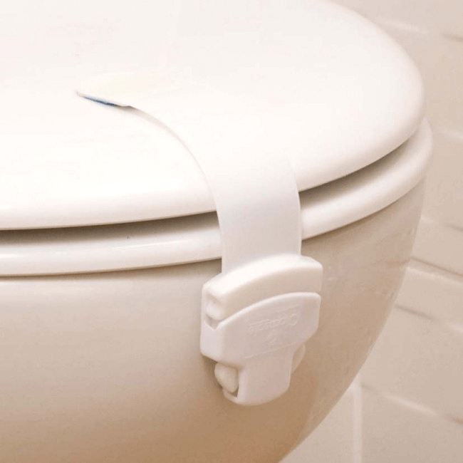 - Prevents the toilet lid from being opened