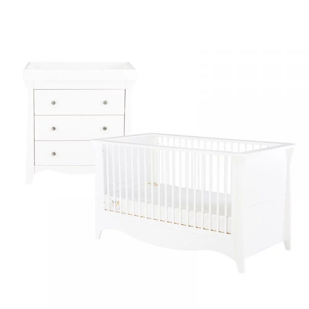 Create a dreamy and timeless nursery with the CuddleCo Clara 2 Piece Nursery Furniture Room Set – Satin White. Designed with a perfect blend of classic elegance and modern functionality, this beautiful furniture set is the ideal choice for your little one’s space. Also available in a three-piece set.