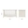 The cot bed provides a secure and comfortable sleep space from birth, with three adjustable mattress base positions that can be lowered as your baby grows. When the time comes for the next stage, it converts easily into a toddler bed, extending its use to approximately five years.
