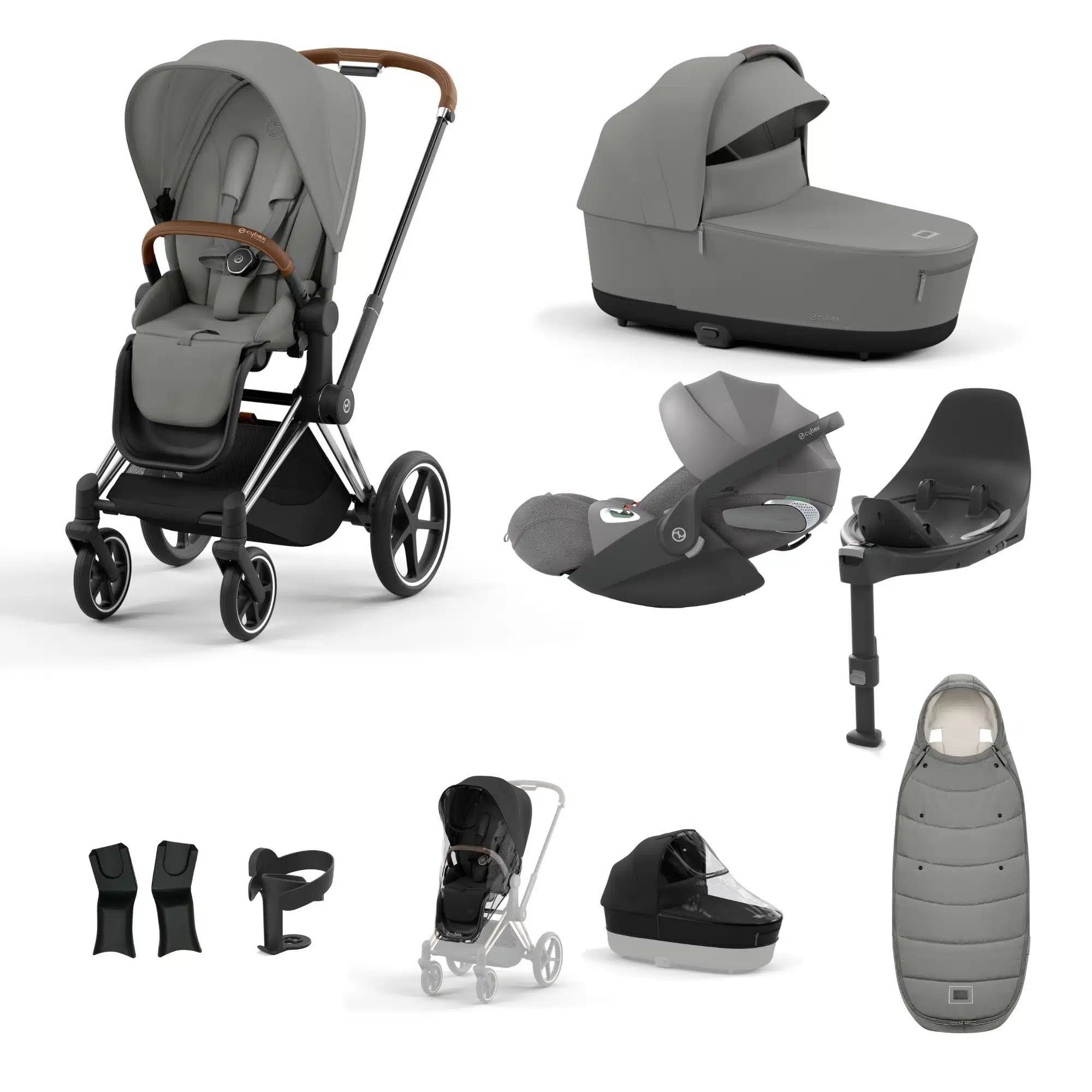 The Cybex Priam Travel System + Cloud T Car Seat & Base T – Mirage Grey (2023) is a versatile and stylish bundle designed for modern families seeking convenience and comfort. It includes the Cybex Priam chassis and Seat Pack, Lux Carrycot, Cloud T i-Size car seat, Base T, Footmuff, car seat adaptors, and a cup holder.