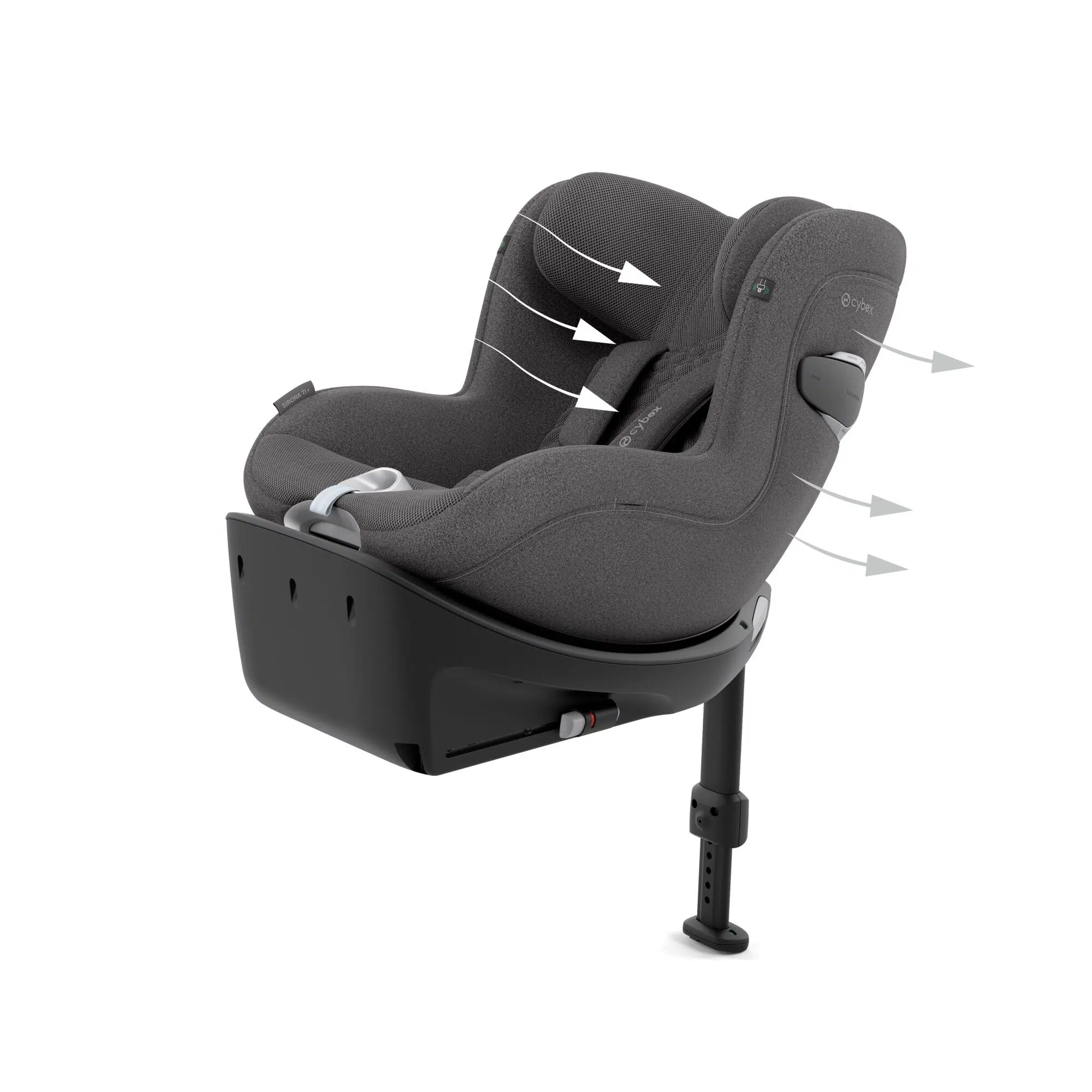 Designed with parents in mind, the Cybex Sirona Ti i-Size also includes practical enhancements to streamline everyday use. The integrated ISOFIX base eliminates the need for additional purchases, and its one-handed recline and headrest adjustments mean quick, easy customisation without hassle. The seat remains reclined while removing your child, preserving peaceful naps. Its side-impact protection system folds away to save space, and the materials used are engineered for both durability and breathability.