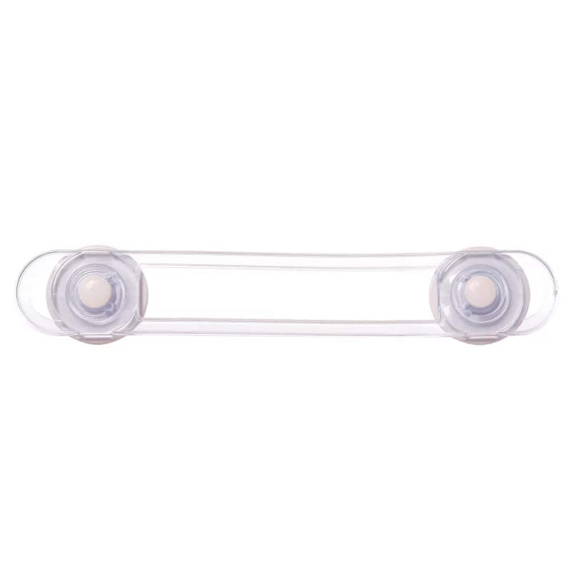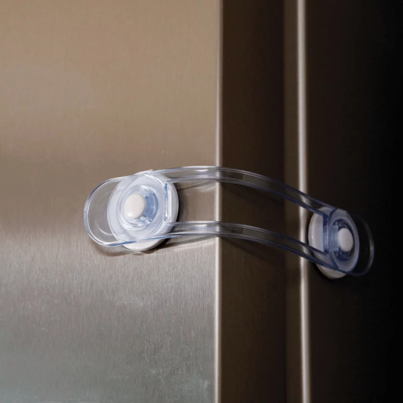 The subtle transparent design means they are discreet and they lock into place when pulled over strap disc. An adult can easily open the latch by simply squeezing and pulling the strap off of the adhesive pad. The easy to install catches can be screwed into place on the inside of your drawers or cupboards.