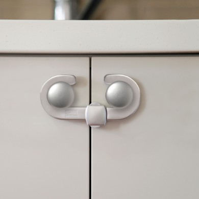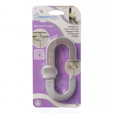 Dreambaby Secure-A-Lock has been designed for use of cabinets handle that are vertical, horizontal, or standard door knobs. The two loops either end lock into place around the handle and are pushed into the lock on the centre clip giving you twice the security and strength of a normal lock. This prevents your child or baby being able to open the door.