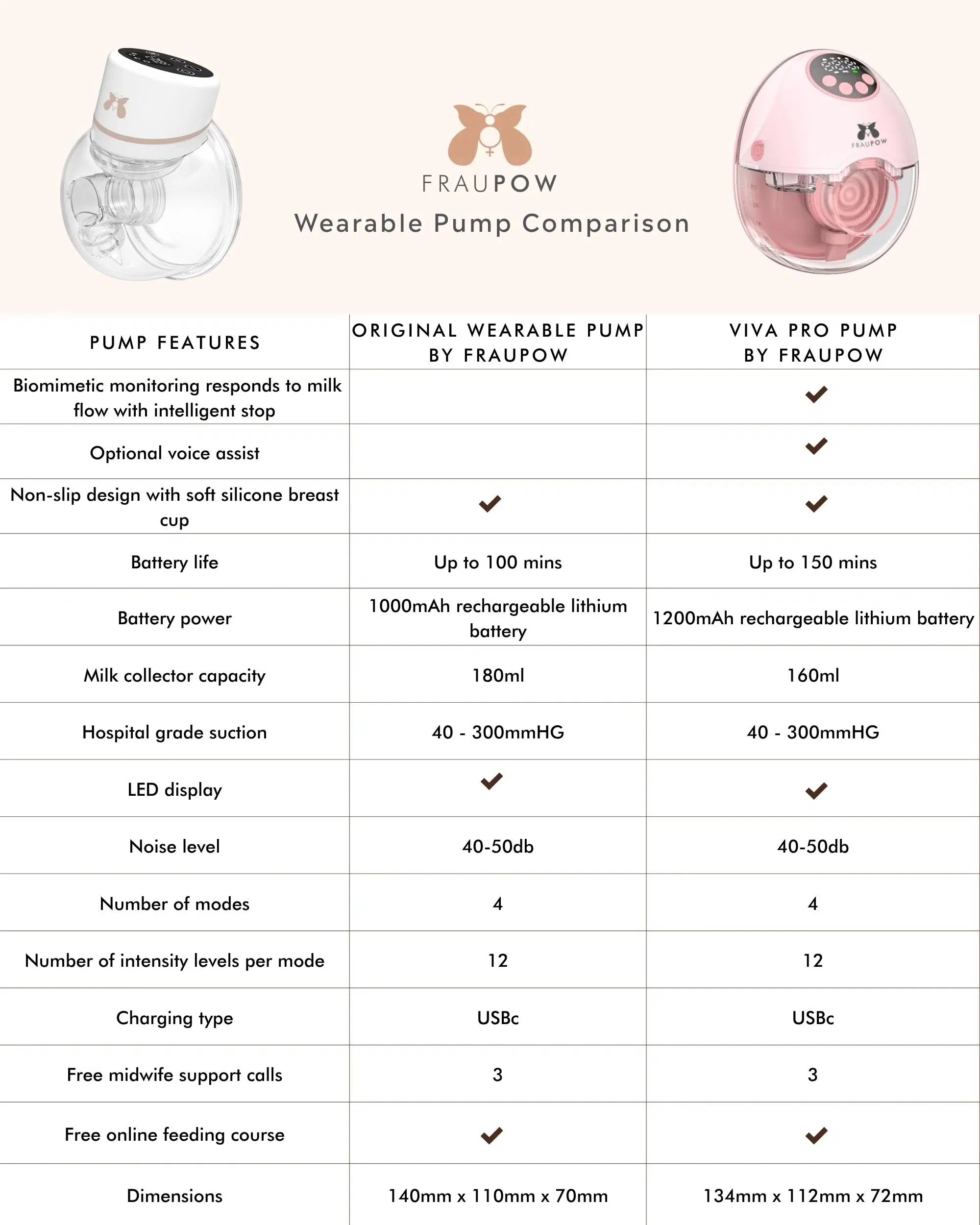 The Fraupow Viva Pro Wearable Breast Pump is a sleek, intelligent pumping solution designed to make expressing milk feel lighter, easier and more intuitive. Combining advanced monitoring technology with hospital-grade performance, it supports mums through every stage of their feeding journey, whether at home or on the move.