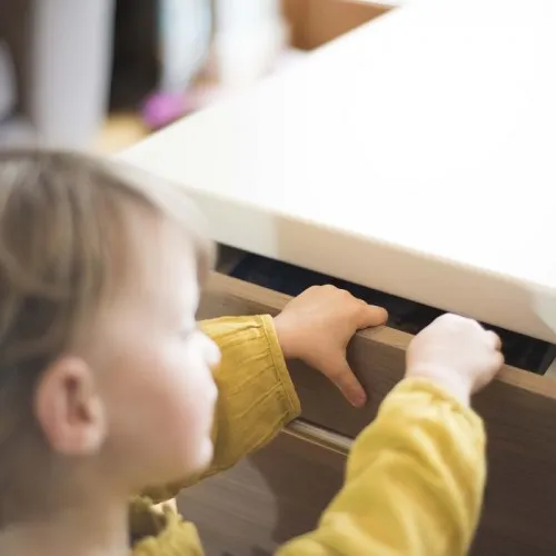 - Keep small hands safe and hazards out of reach with Top Drawer Catch