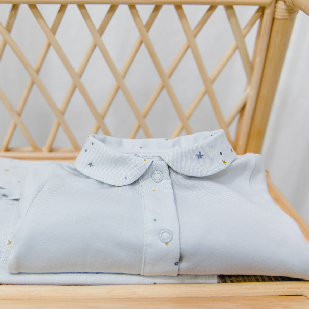 - Long sleeve babygrow with a laminated collar