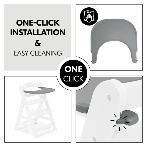 In summary, the Hauck Alpha Click Tray – Grey is a durable, sustainable and family-friendly addition to your Alpha+ that helps create a secure and enjoyable space for eating and play.