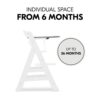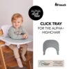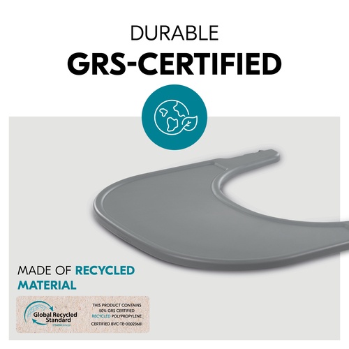 Made from Global Recycled Standard certified material, the tray combines sustainability with everyday usefulness. It fixes to the highchair with a single click and features a smooth surface that wipes clean effortlessly. Paired with the existing harness system on the Alpha+, it helps keep your child safely positioned, even when the chair is used away from the dining table. Its generous surface area offers room for meals, cups and toys, while the raised edge helps prevent spills and keeps items from sliding off during play.