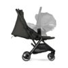 Large mesh ventilation panels help keep airflow comfortable during warmer days, and the spacious basket ensures travel essentials remain easy to access. The included adapters allow pairing with selected Cybex and Maxi-Cosi infant car seats, giving parents a flexible travel system option.
