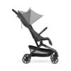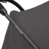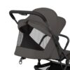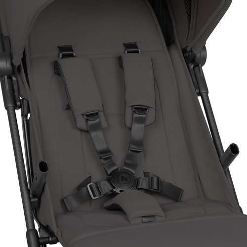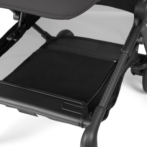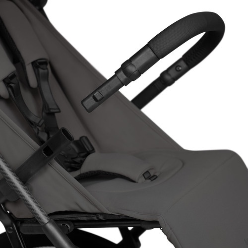 The pushchair’s adjustable backrest and footrest ensure a comfortable position from birth up to 22 kg, supporting both rest and exploration. Its breathable fabrics, extra-large canopy with UPF 50+, and panoramic ventilation panels help maintain airflow and shade during warm weather, while giving parents a clear line of sight to their child.