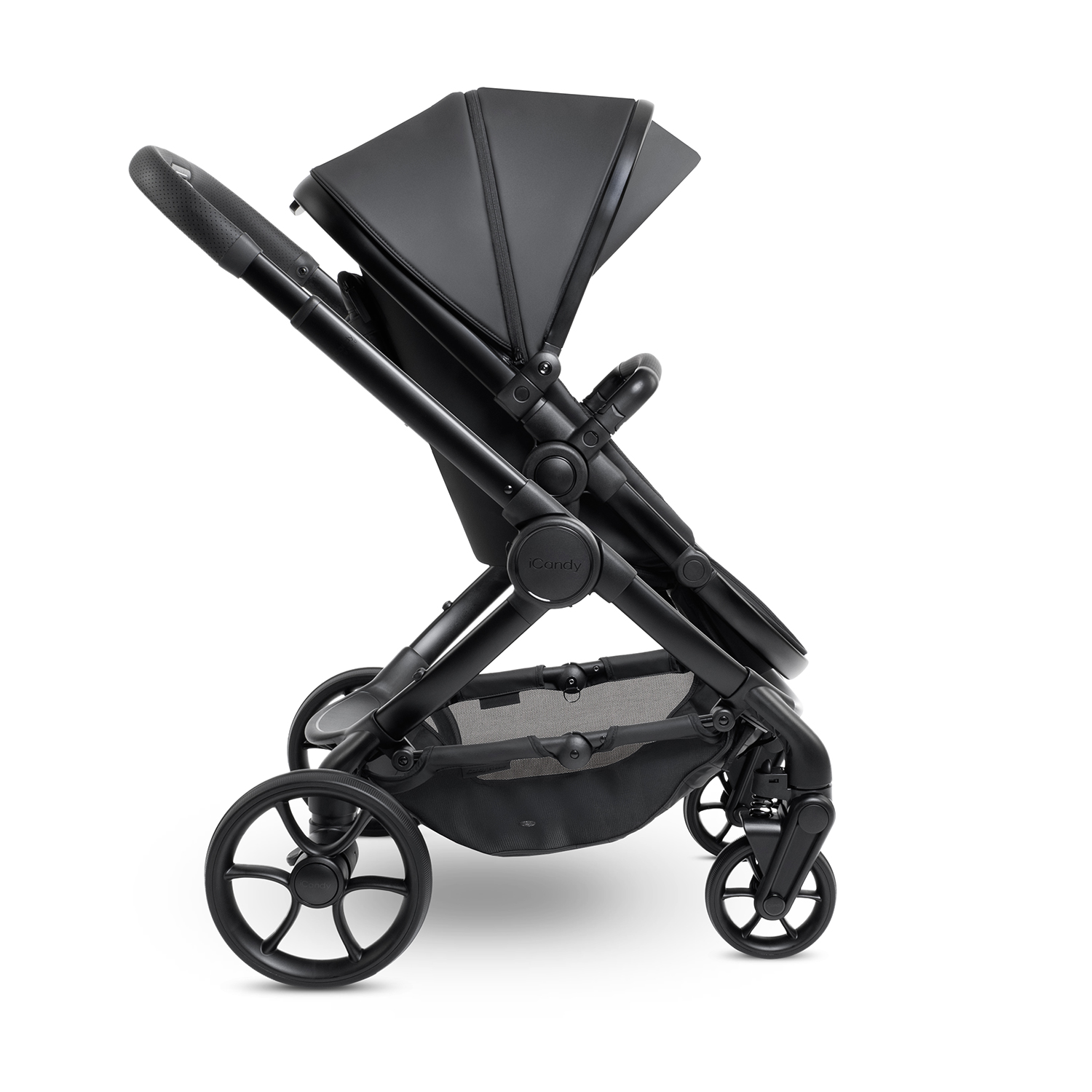 The iCandy Peach 7 Studio Complete Pushchair Bundle – Zenith redefines modern parenting with its flawless fusion of premium aesthetics, intuitive functionality, and complete comfort. Designed for parents who value high-end design without sacrificing practicality, this pushchair delivers effortless usability from day one through toddlerhood. Every detail has been carefully considered—from its ultra matt black chassis to the fashion-inspired leatherette finishes—ensuring it stands out on the street while offering comfort and control on every journey.