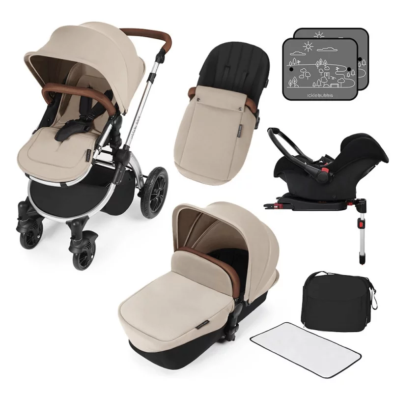 Ickle Bubba Stomp V3 All In 1 Travel System with ISOFIX Base – Sand On Silver