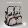 Despite its twin configuration, the Ayla Twin folds quickly into a remarkably compact package. Lightweight and space-saving, it is easy to lift, carry and store — ideal for busy parents navigating city streets, public transport or car boots. Once folded, it measures just W76 x H59 x D42cm, making storage simple and convenient.