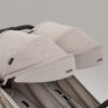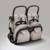 Both seats are designed with plush padding and multiple recline positions to ensure each child travels in comfort. Included footmuffs keep little legs warm on cooler days, while individual cup holders provide easy access to drinks and snacks. Premium fabrics throughout add a refined finish and long-lasting durability.
