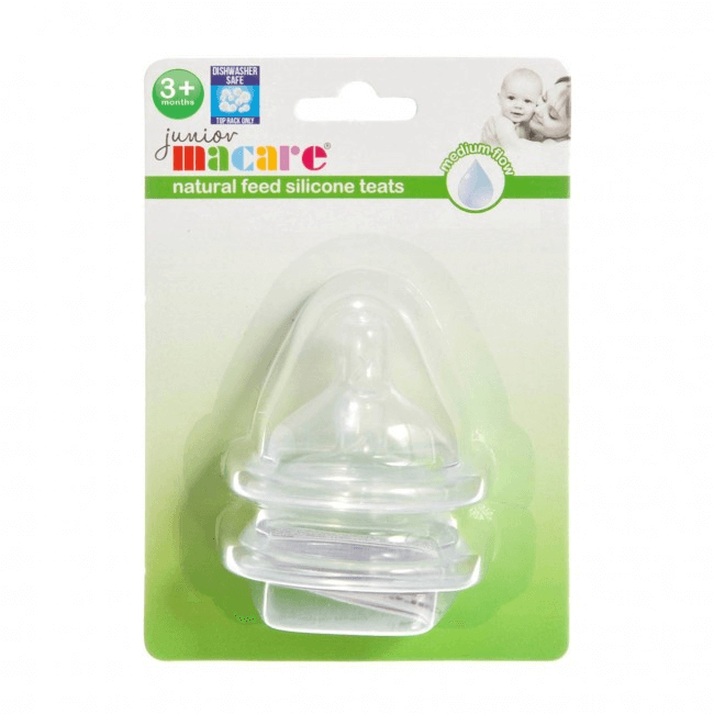 Junior Macare Natural Silicone Teat Medium Flow 2pk 3m+