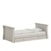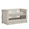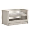 The Celeste Cot Bed is suitable from birth to approximately 4 years, with three adjustable mattress heights for comfort and safety. As your child grows, the cot easily transforms into a toddler bed, ensuring long-term use. Plus, the included under-bed drawer provides extra storage for bedding and essentials.