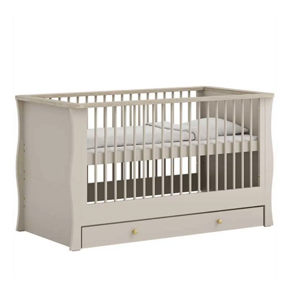 The Celeste Dresser features three deep, reinforced drawers, offering ample space for clothes, diapers, and other baby necessities. The sleek, modern design and elegant curves match the cot bed beautifully, bringing a cohesive look to your nursery.