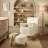 Upholstered in irresistibly soft bouclé fabric, the chair offers a deep, plush seat and inviting texture that enhances comfort while adding a contemporary feel to the nursery. A smooth rocking motion helps gently soothe baby, making it ideal for settling routines and sleepy moments. The coordinating footstool completes the set, allowing parents to put their feet up for added comfort during extended use.