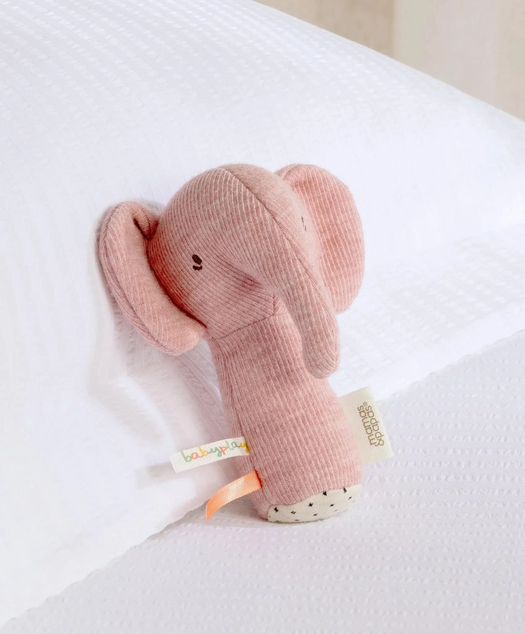 Edie Elephant Rattle Toy from the Babyplay range is a charming first toy designed to spark curiosity, encourage sensory exploration and support early development through play. Thoughtfully created for tiny hands, Edie combines softness, sound and texture to turn everyday moments into joyful discoveries. With her gentle pink tones and friendly elephant character, she quickly becomes a comforting companion as well as an engaging sensory toy.
