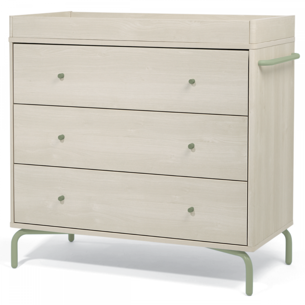 Signature Modern Design – A mix of natural wood tones and curved metal legs (choice of 3 colours) brings bold interior style to your nursery.