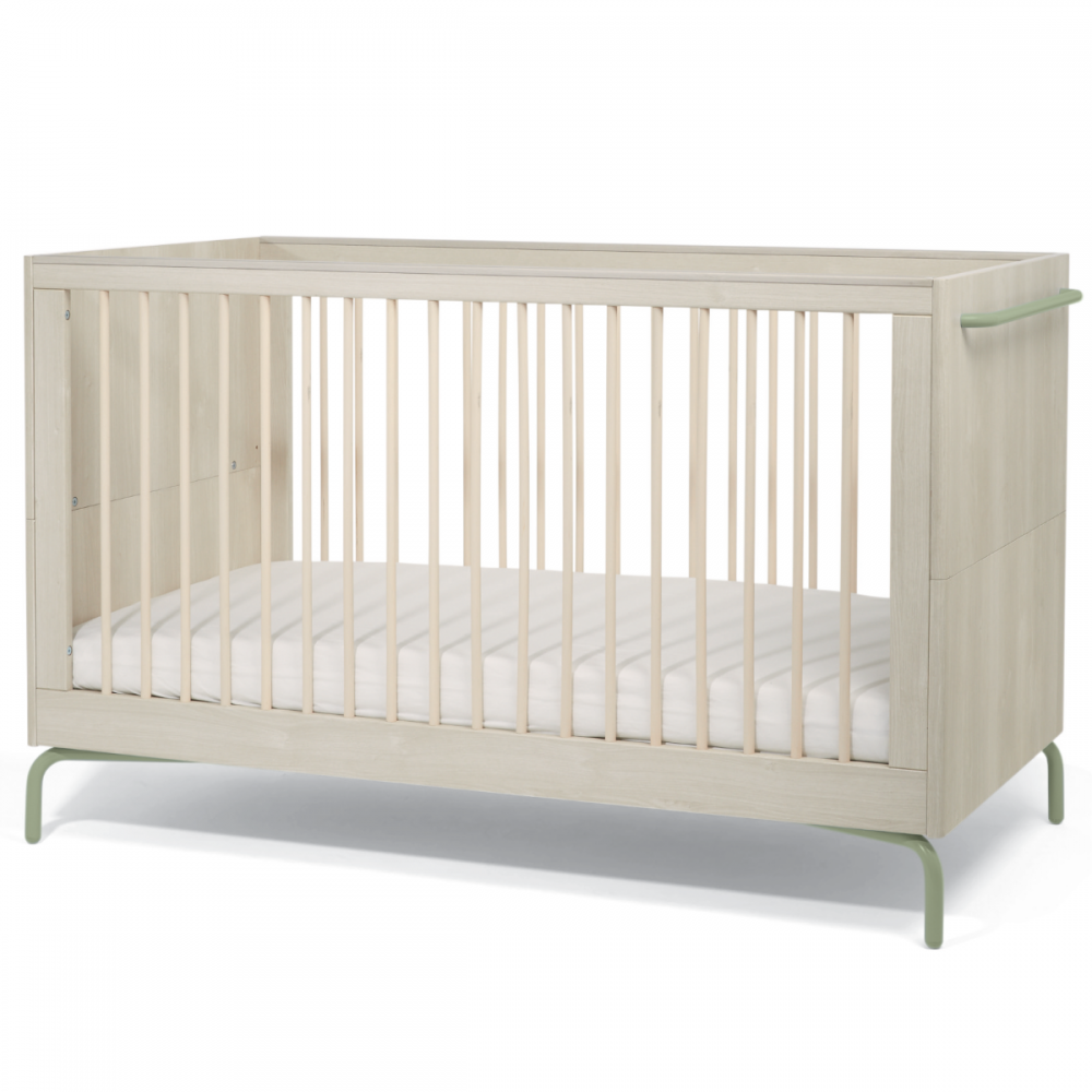 The Mamas & Papas Kinlay 2 Piece Set in Moss Green is a stylish, contemporary nursery furniture bundle, blending bold modern design with practical functionality. Including a convertible cot bed and dresser changer, this nursery set brings together natural wood finishes, curved metal legs in a choice of three colours, and playful, rounded shapes inspired by utilitarian interiors. It’s a statement set that offers longevity, versatility, and charm from birth through to toddlerhood.