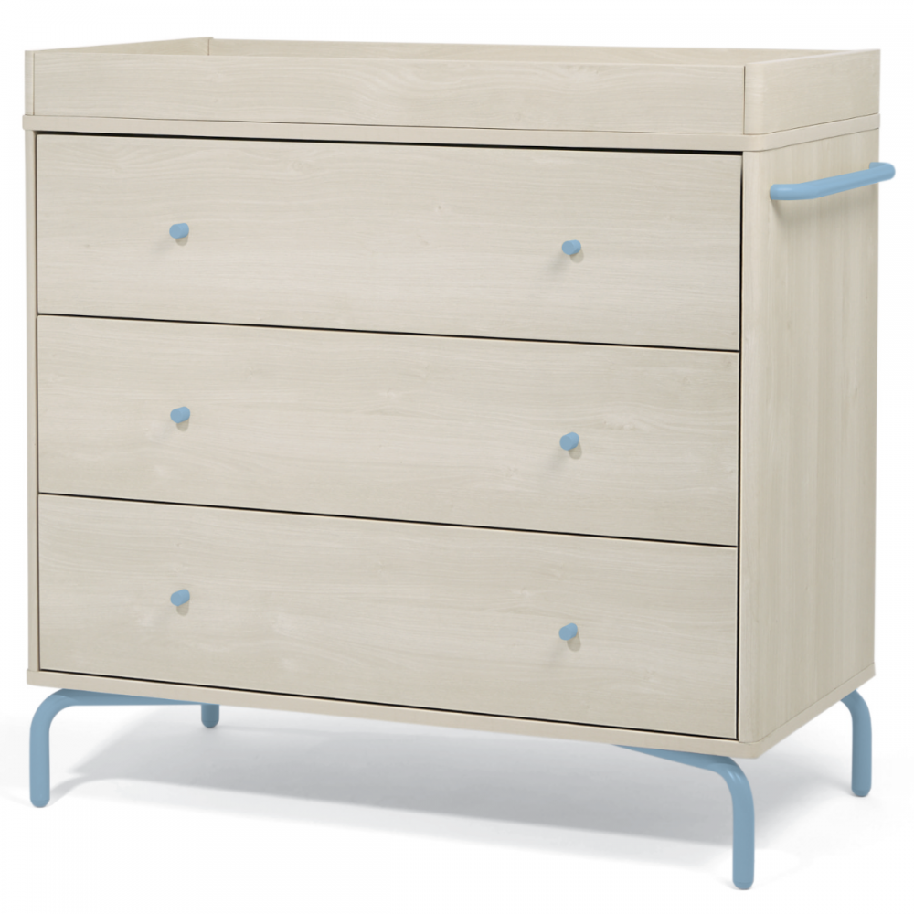 A versatile 2-in-1 unit combining a practical changing area with spacious storage. The removable changer top allows you to continue using the dresser as your child grows. It features three soft-close drawers for quiet, gentle use and is designed with curved metal legs and natural wood finishes to match the cot bed perfectly. The dresser includes a colour-coordinated hanging rail for additional convenience. Changing mat not included – suitable for Mamas & Papas changing mattresses. -