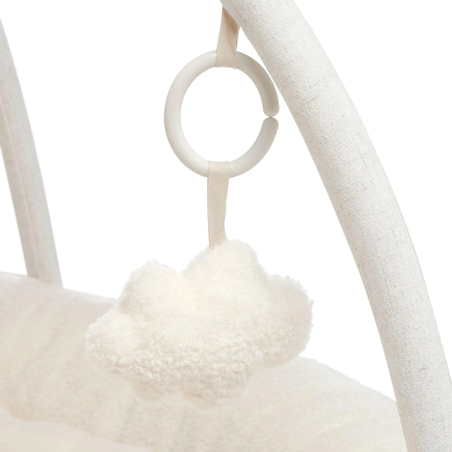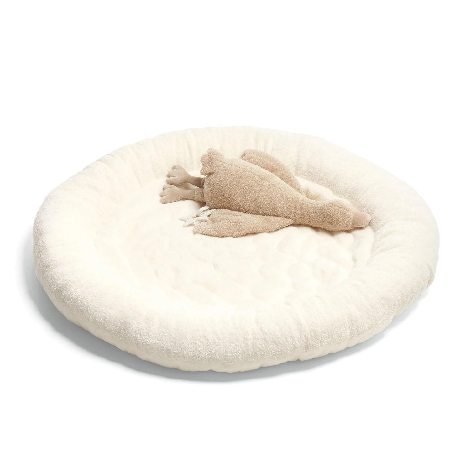 Mamas & Papas Playmat & Activity Gym – Welcome to the World Duckling provides a soft, interactive space for newborns to explore and develop their senses. Designed with a warm, neutral colour palette, this stylish playmat fits seamlessly into modern interiors while offering a cosy, padded base for comfort. Featuring quilted faux fur fabric, it creates a soothing environment where babies can relax, play, and engage with the variety of sensory elements included.