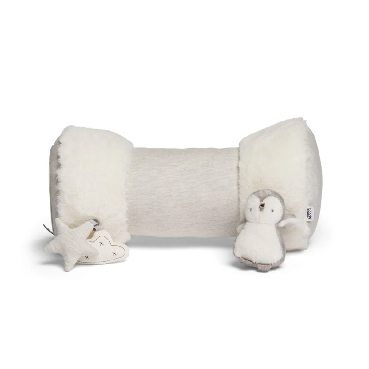 Mamas & Papas Tummy Time Roll – Wish Upon a Cloud is designed to support early development while providing a fun and engaging experience for babies. Crafted from super-soft faux-fur fabrics, this plush roll is perfect for tummy time exercises, helping little ones build strength in their neck and shoulder muscles. As they prop themselves up on their arms, they can explore a variety of sensory features, including crinkly textures, squeakers, and a hidden rattle inside the adorable penguin character toy.
