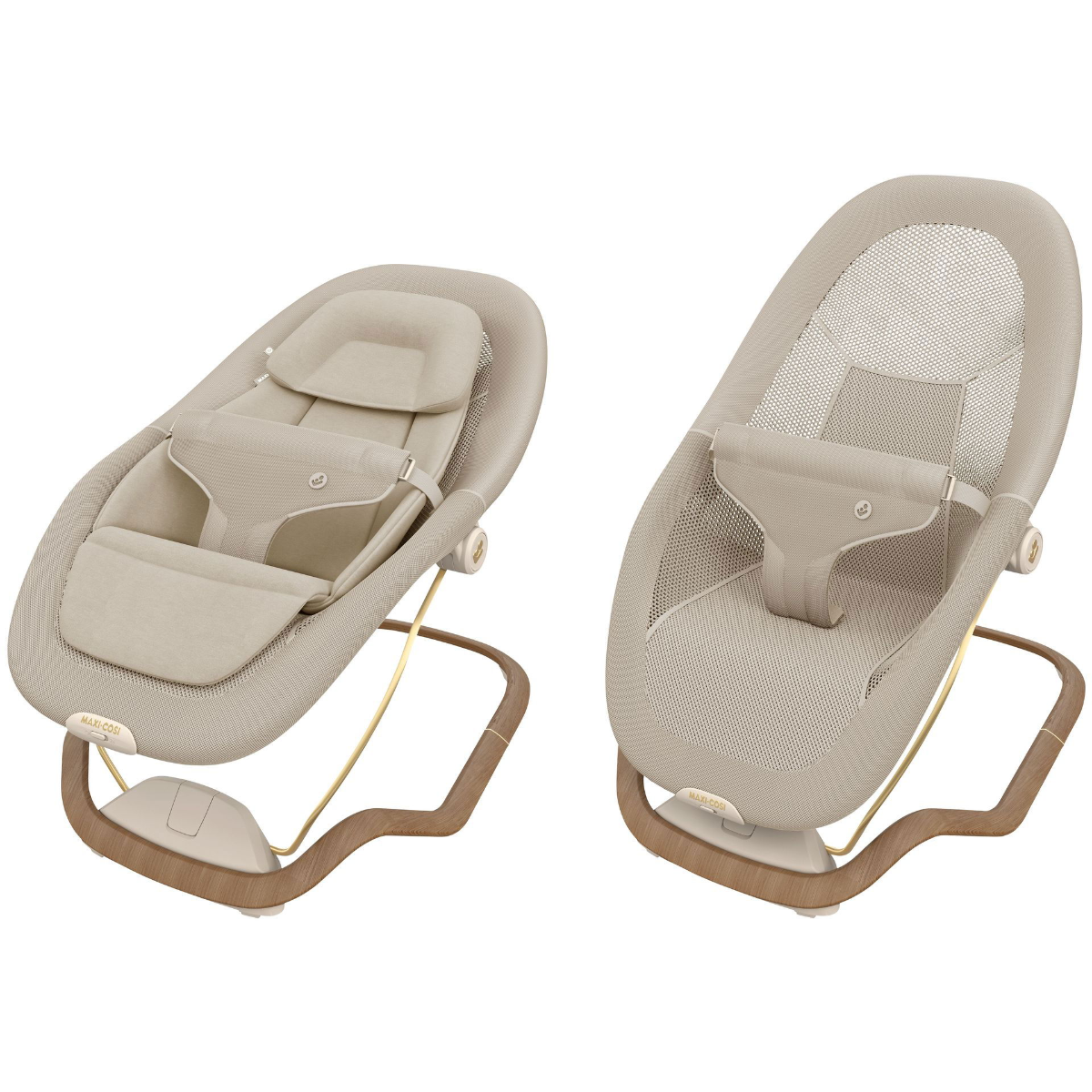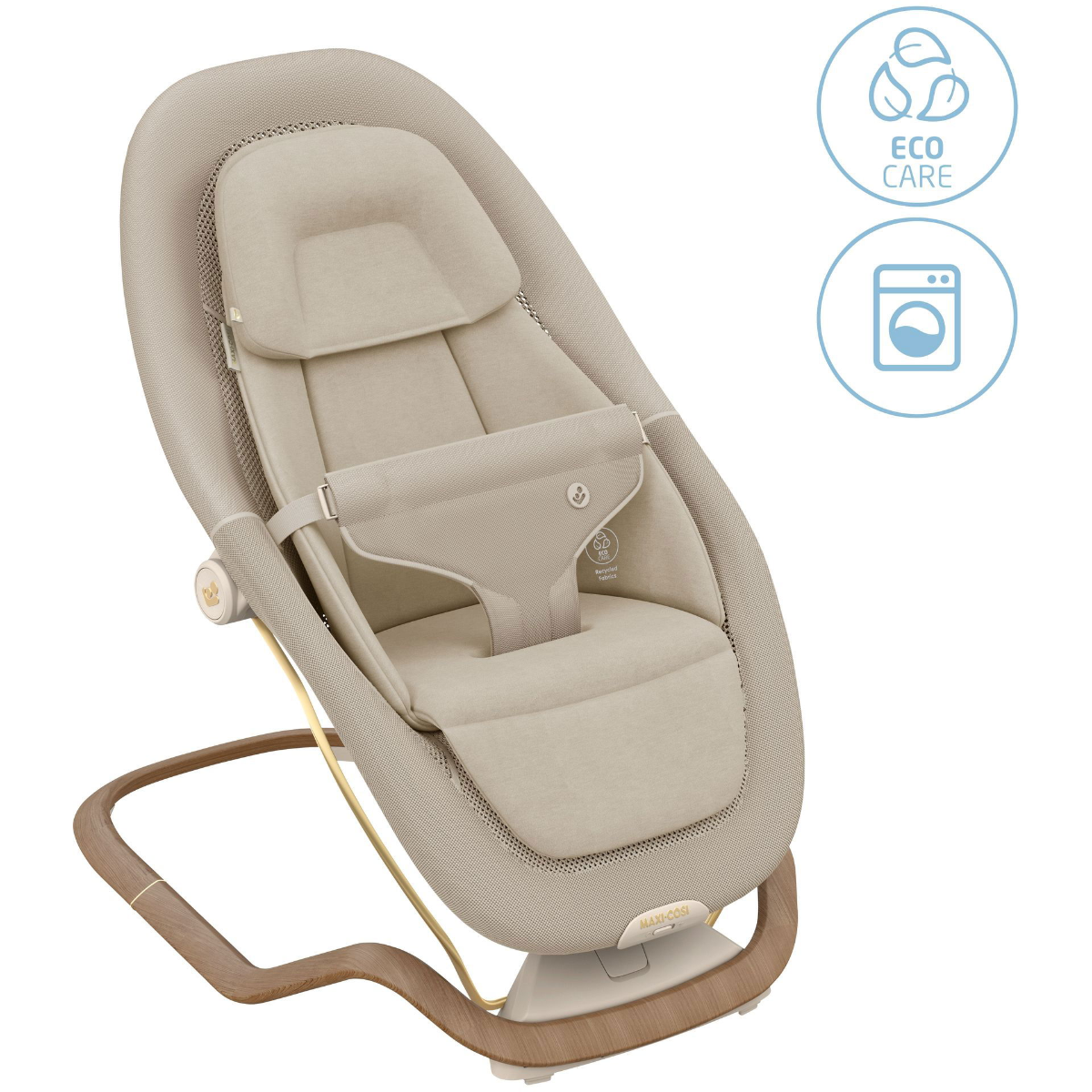 Designed to grow with your child, the Dove Pro can be used as a secure bouncer from birth up to 9 kg, then transforms into a comfortable toddler seat up to 15 kg. With its elegant beige finish, curved frame, and stylish wood-effect detailing, it blends seamlessly into modern home interiors.