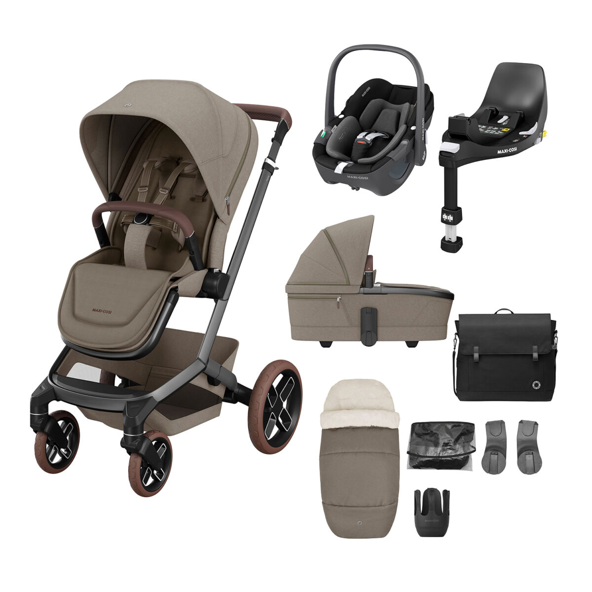 The Maxi-Cosi Fame Complete Travel System in Twillic Truffle with Brown Wheels sets a new benchmark for luxury, safety, and innovation. Designed to support your child from birth up to approximately 4 years (up to 22–25 kg), this all-in-one system seamlessly blends timeless aesthetics with pioneering features, ensuring exceptional comfort and convenience for both baby and parent throughout the early years.